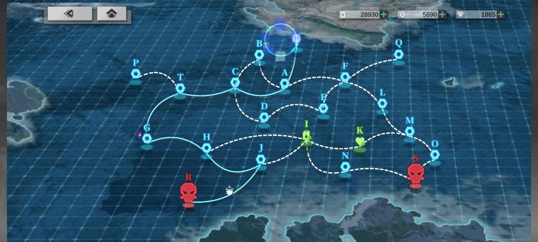 白鹬线4航母限制导致油耗门槛较高,本攻略思路从航母入手压低油耗,直接把不考虑强度的低星低油耗航母全扔后排且尽可能排在二队减少出战次数,同时使用两艘驱逐分别担任两队前排清关并单杀BOSS。