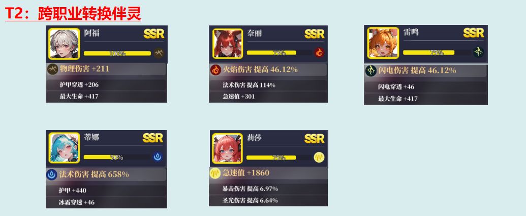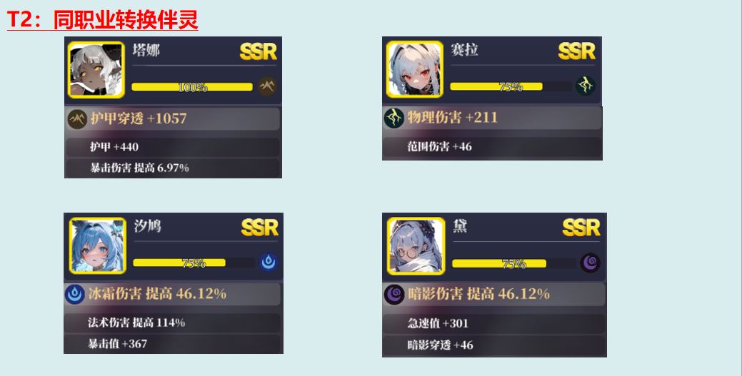 在强化较低且没有SSR伴灵情况下,可以选择用SR伴灵增加基础面板值,弥补强化不足;