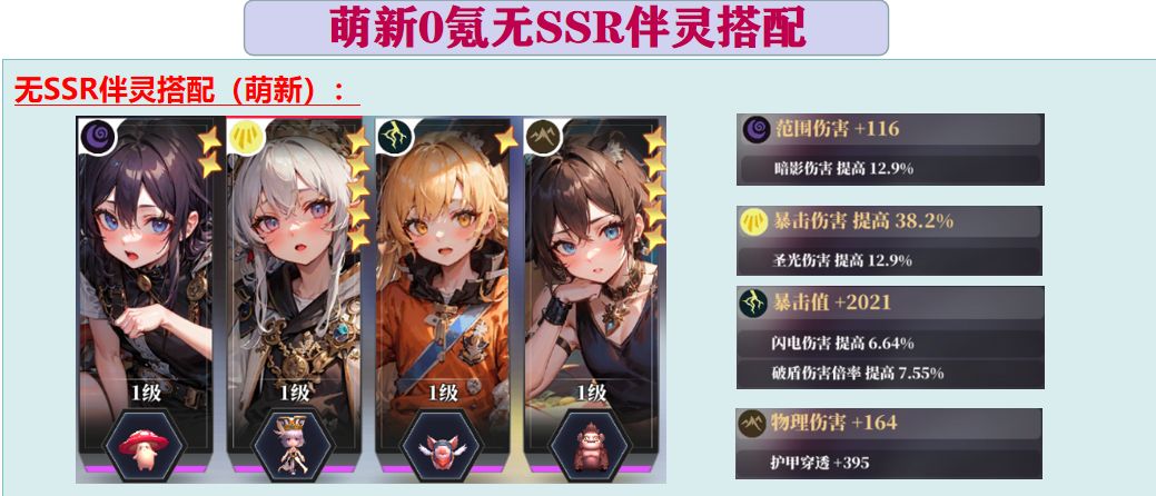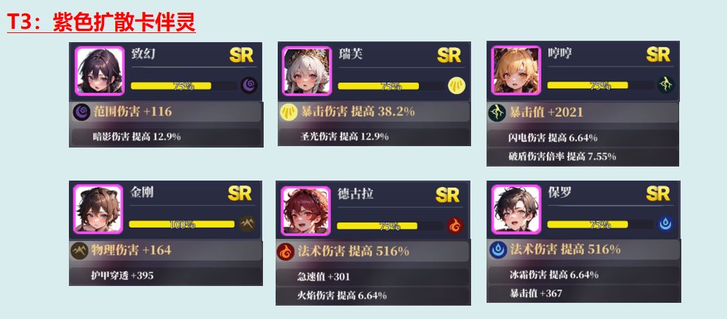 需要伤害最大化的情况下实在没有多余的位置可以再去携带紫色SR伴灵,但是对于新玩家或者特定情况,紫色伴灵反而更为实用。