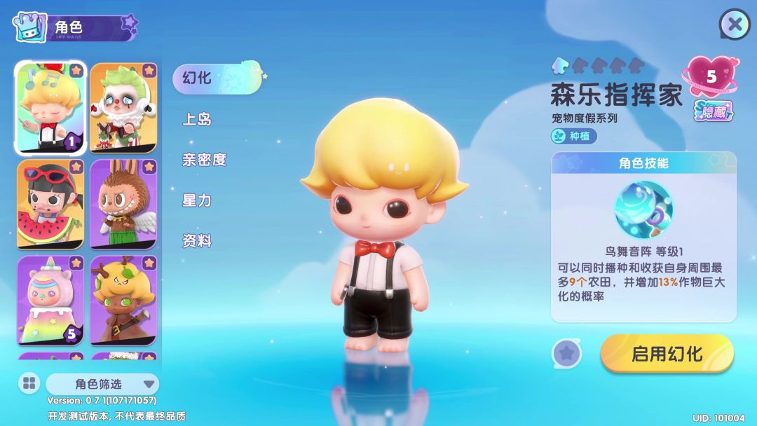 使用DIMOO森乐指挥家的幻化,挥动指挥棒四周音符飘动,同时头顶小鸟飞动一周对周围9块农田进行播种和收获。