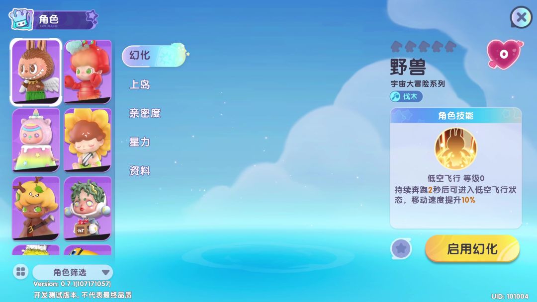 使用LABUBU野兽的幻化,持续奔跑2秒后可以飞起来然后提升奔跑速度;