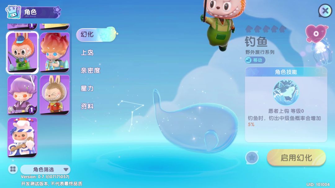 使用LABUBU钓鱼的幻化,钓到高品质鱼的概率增加;