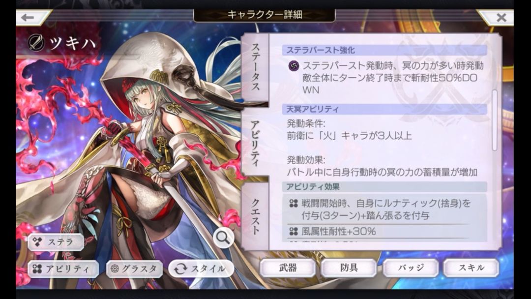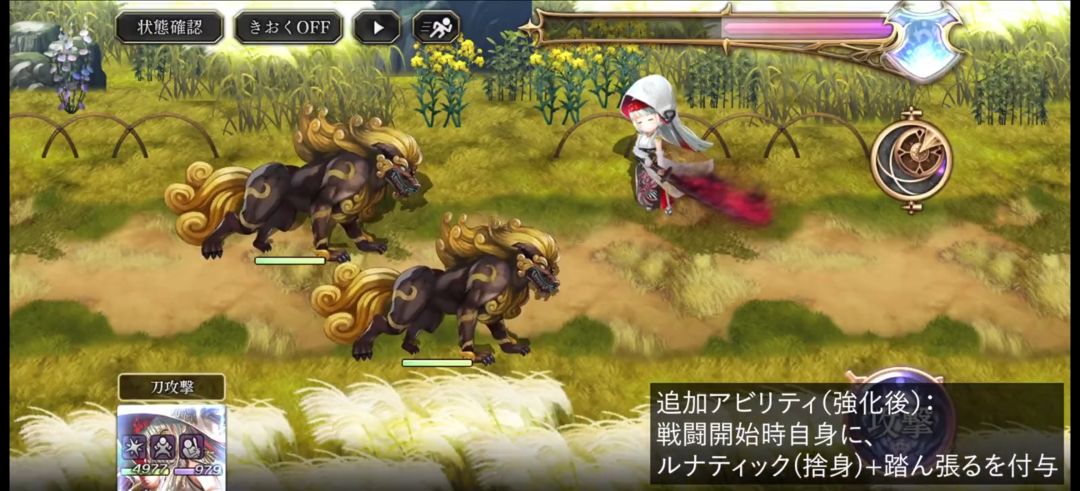 辅助面上提供了叠层的100火伤,100火耐,有很不错的辅助能力。缺点一是砍耐仅为单体,面对3体以上的boss会难以发挥优势,二是叠层buff惧怕白化