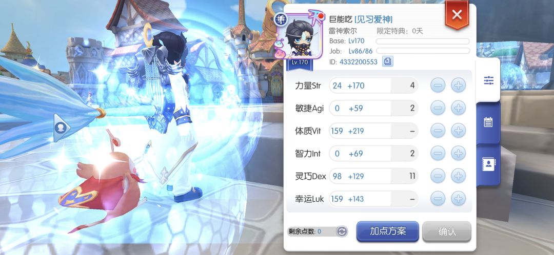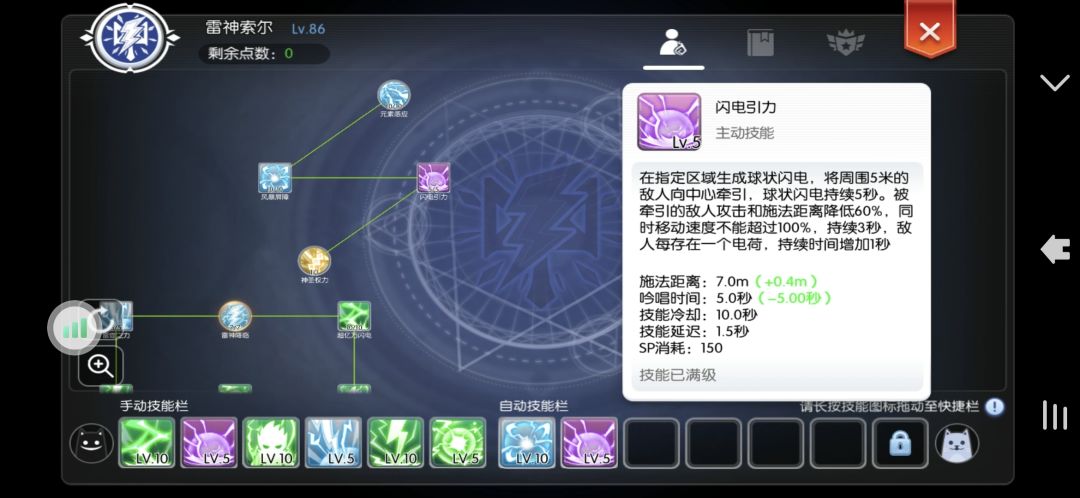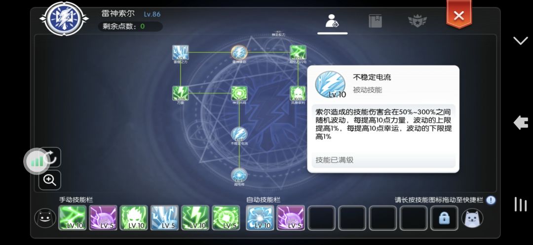 然后雷神加点以幸运,力量,灵巧为主。主要原因是这个技能