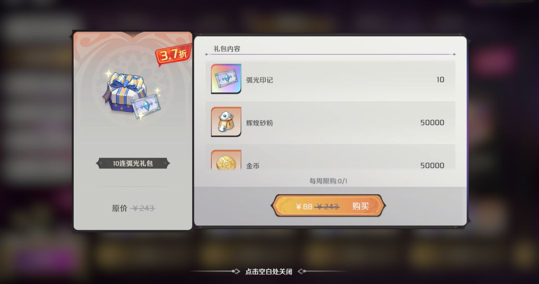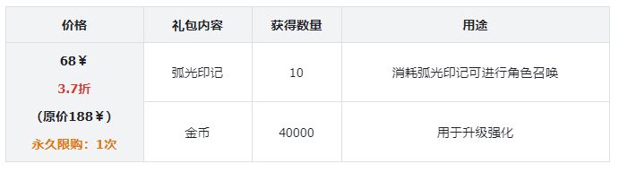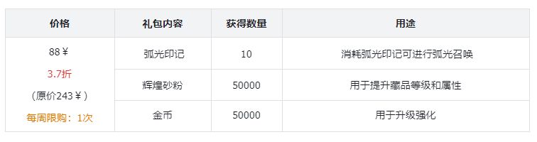 3.8、限时弧光礼包