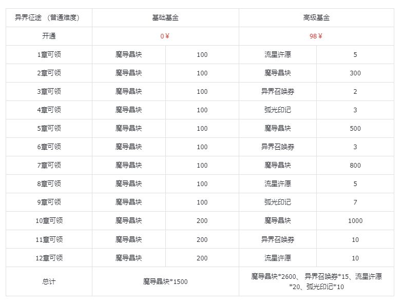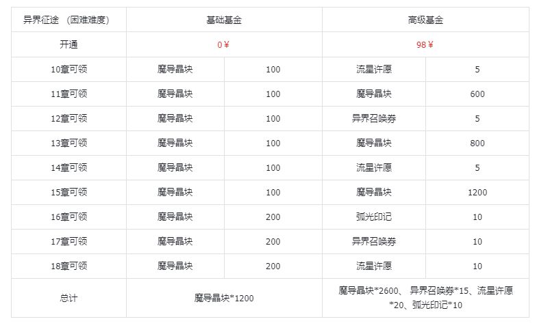 开通后,立即获得魔导晶块250颗,在30内,每天获得扫荡之钥(噩梦之钥+3,秘境之钥+1),每天异界征途获得(每日每关挑战+2),每天宝物库获得(每日首次奖励200%),每天失落龙巢获得(每日挑战+1)。