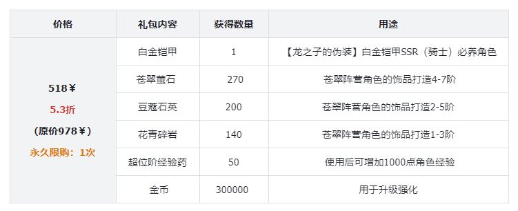 白金铠甲礼包评测: