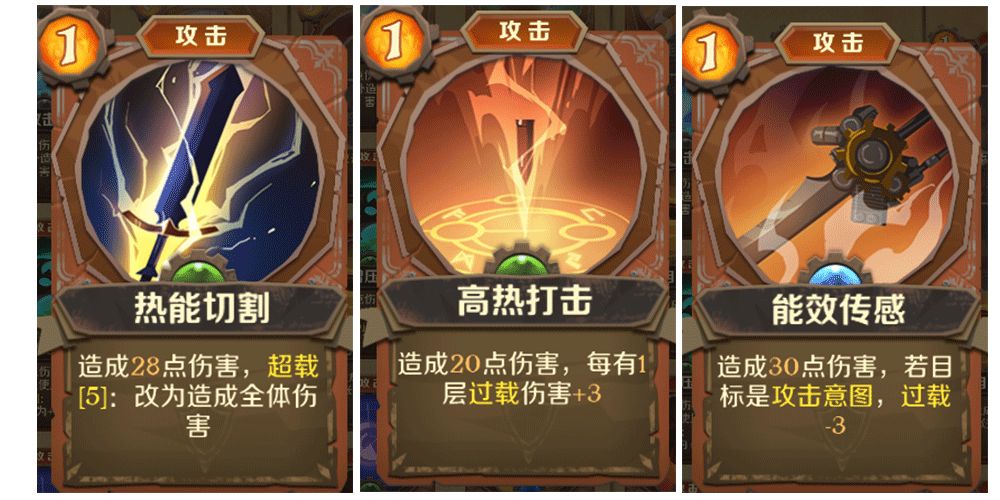 推荐“热能切割”、“高热打击”和“能效传感”,都是一费的超高伤害牌