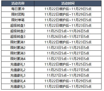 【活动时间】11月22日维护后~11月23日5点
