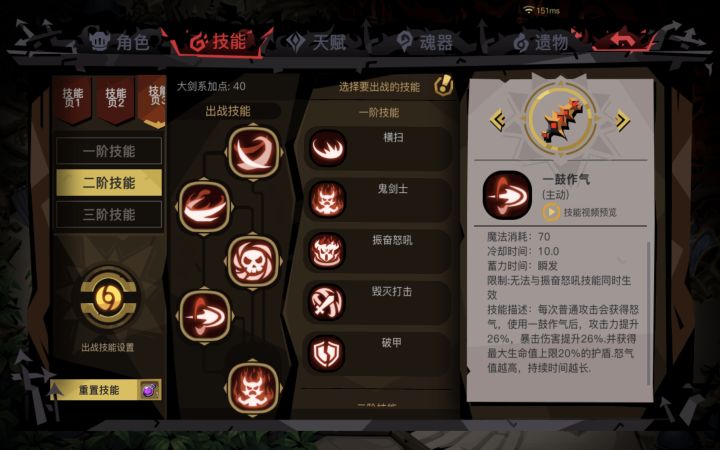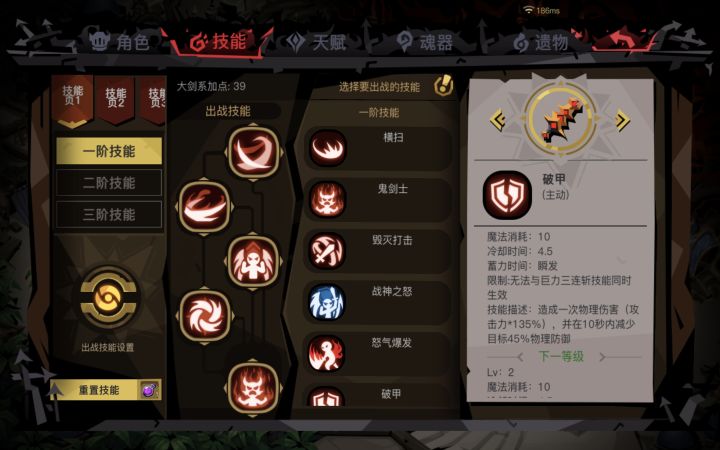 三阶技能:越战越勇(重要!)、以直报怨(大报复)、红色战神、剑刃风暴。