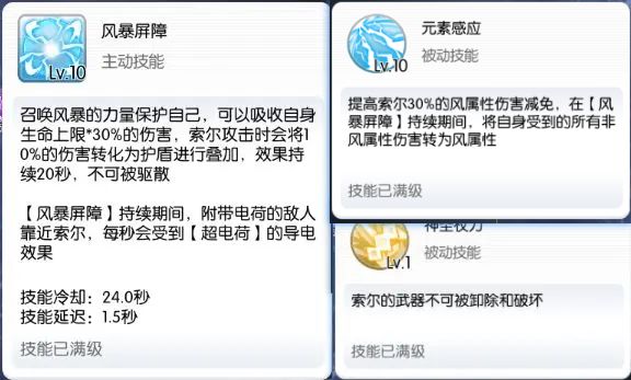 雷霆之力:建议输出(接近怪)之前就先释放五秒,可以提高元素克制系数0.5非常重要!(每30s就要放一次,好影响输出啊,不过这个技能竟然不会被努卡禁用,但是有p用,光壁打上去全是miss,打英灵博3离努卡远点,会影响输出);