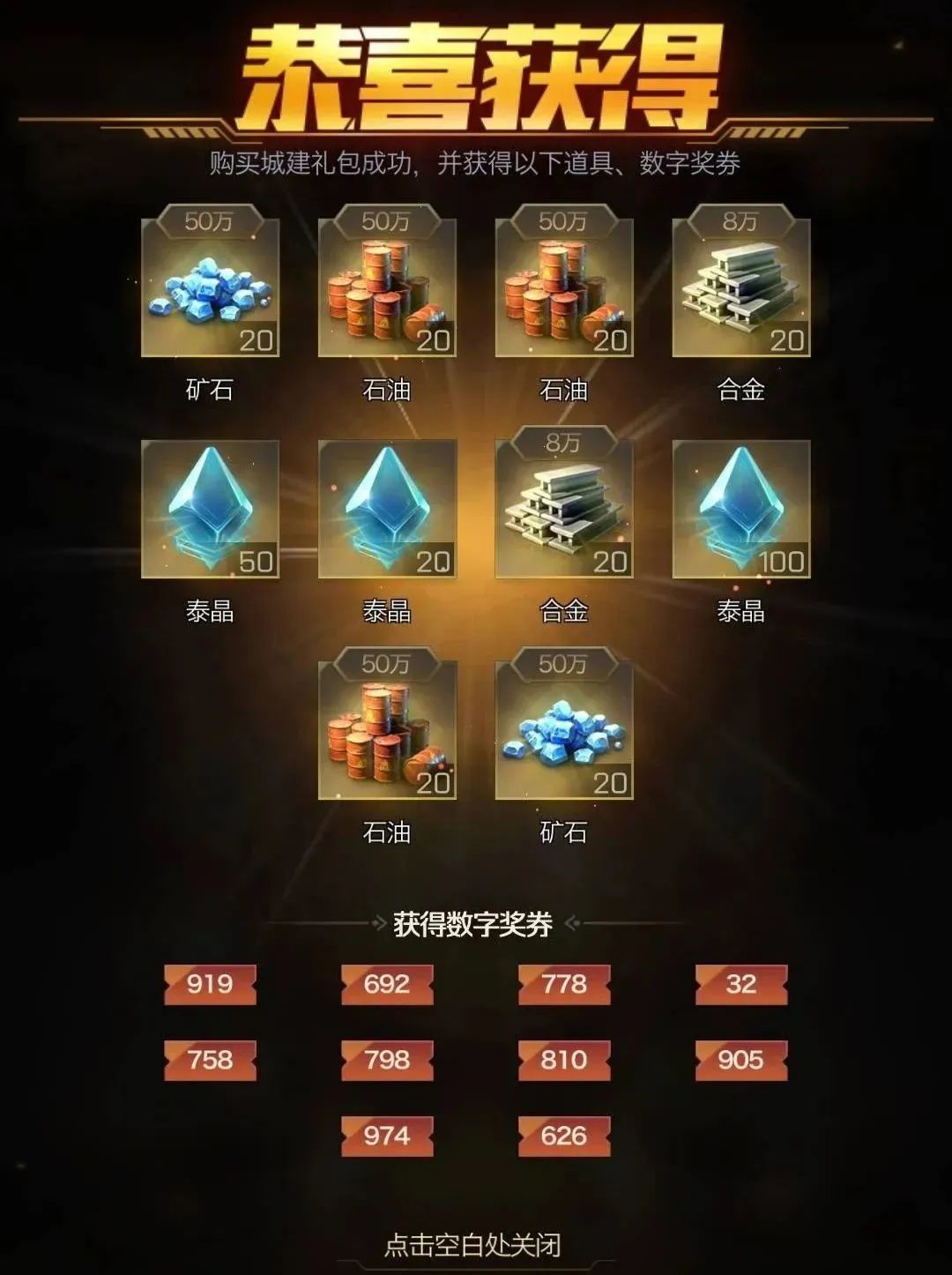 鸿运夺金活动期间大家可以通过花费金条购买城建礼包获得抽取道具和数字奖券的机会,每天最多可抽取500次,抽取到对应次数可领取抽奖次数奖励,奖励一共有三种,分别对应量子扩充石奖励、荣耀通用碎片奖励和泰矿母体奖励,每个任务奖励仅可领取一次,活动结束后未领取的任务奖励视为放弃。