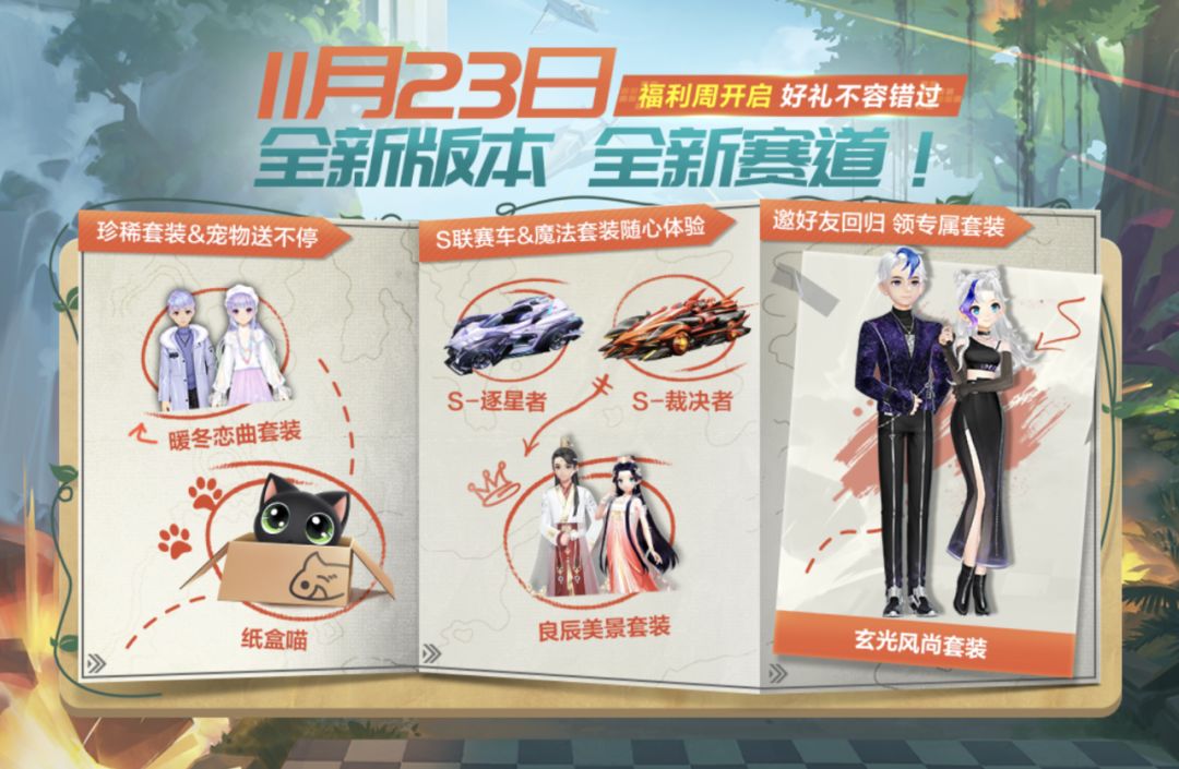 千呼万唤始出来,新版本福利已就位!全新版本将于11月23日上线,珍稀套装、宠物通通送送送!还有超多福利等你来拿~跟小橘子一起来看看吧!