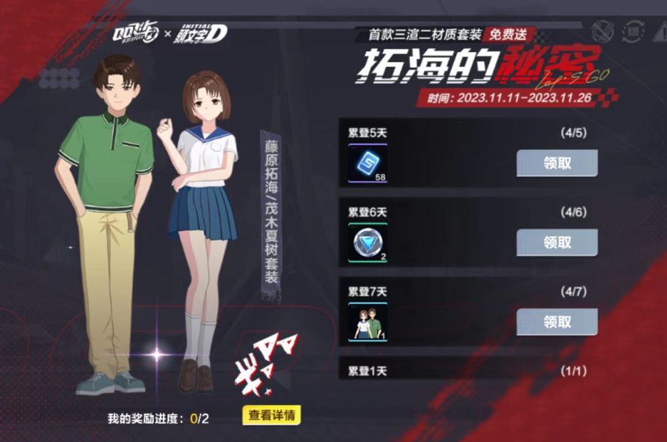 奖励:藤原拓海套装、茂木夏树套装、许愿银币、点券等好礼