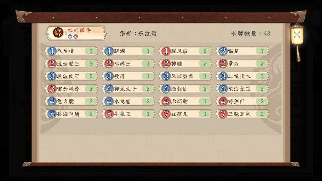 这套卡组不打鲁莽快攻,前期遇快则快,遇慢则慢,用平稳的局面过渡到后期发力。后期可以利用火系的大哥大法术终结对手(三味真火/红孩儿),也可以利用法术斩杀(雷云)。