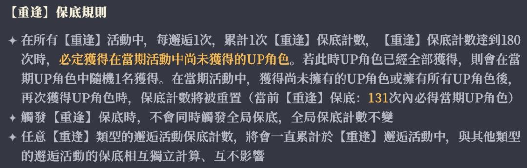 之前内容,对双UP卡池的重逢卡池描述有误,经评论区多位小伙伴指正,这里再具体说明下: