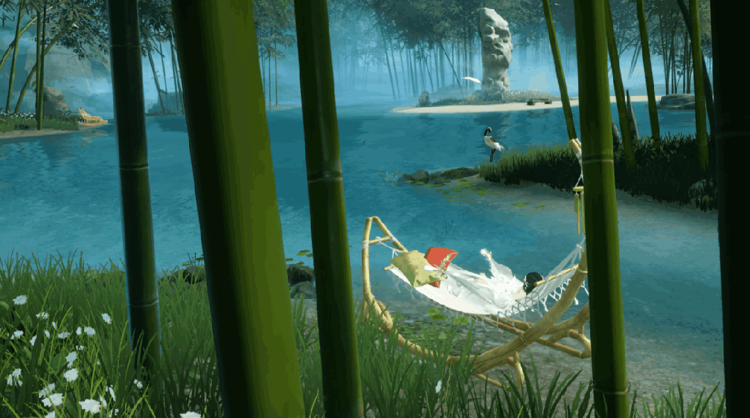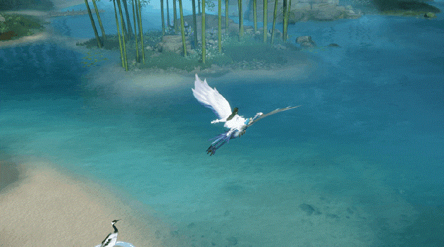 我屋南窗风更清,时逢仙鹤竹间鸣。欲作神仙,怎能少了驾鹤飞天?与【灵鹤】互动,即可乘鹤而行,穿梭林间,阅秘境幽景。