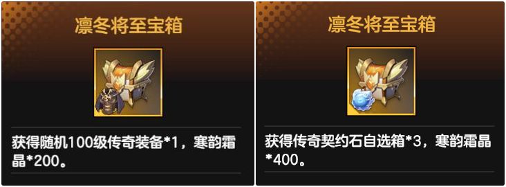 【凛冬将至】福利活动——100级传奇装备,传奇契约石自选箱等你来开启!