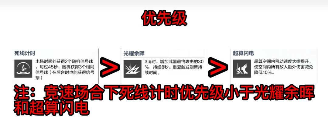 武器共鸣按优先级推荐死线计时、光耀余晖、超算闪电,囚笼环境光耀余晖和超算闪电优先级大于死线计时。