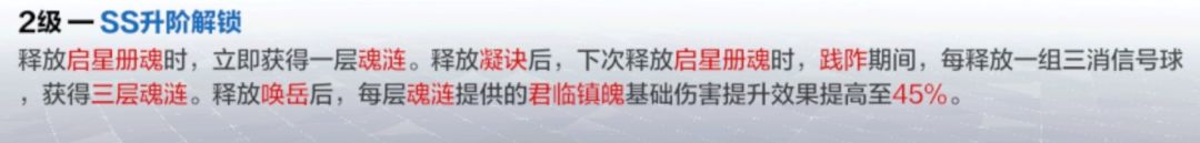 ss阶提高了凝诀下大招的启动速度和唤岳下大招的伤害,同时开启大招后给一层魂涟的机制也为启明省下了一组三消,增加了曲的续航能力。