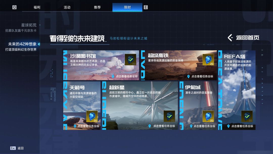 而在『看得到的未来建筑』中,玩家需要前往各个任务坐标,使用天文望远镜打卡拍照『看得到的未来建筑』,不仅能收藏到美美的照片,还可获得大量原晶~
