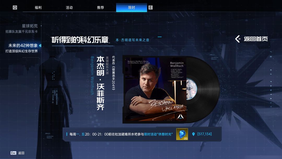最后在周一、周五 20:00-21:00 参与『休憩时光』活动,品味本杰明编写的『听得到的未来乐章』就可获得原晶,在杜加避难所水吧里也能蹦蹦迪、玩玩四子棋,放松下心情~