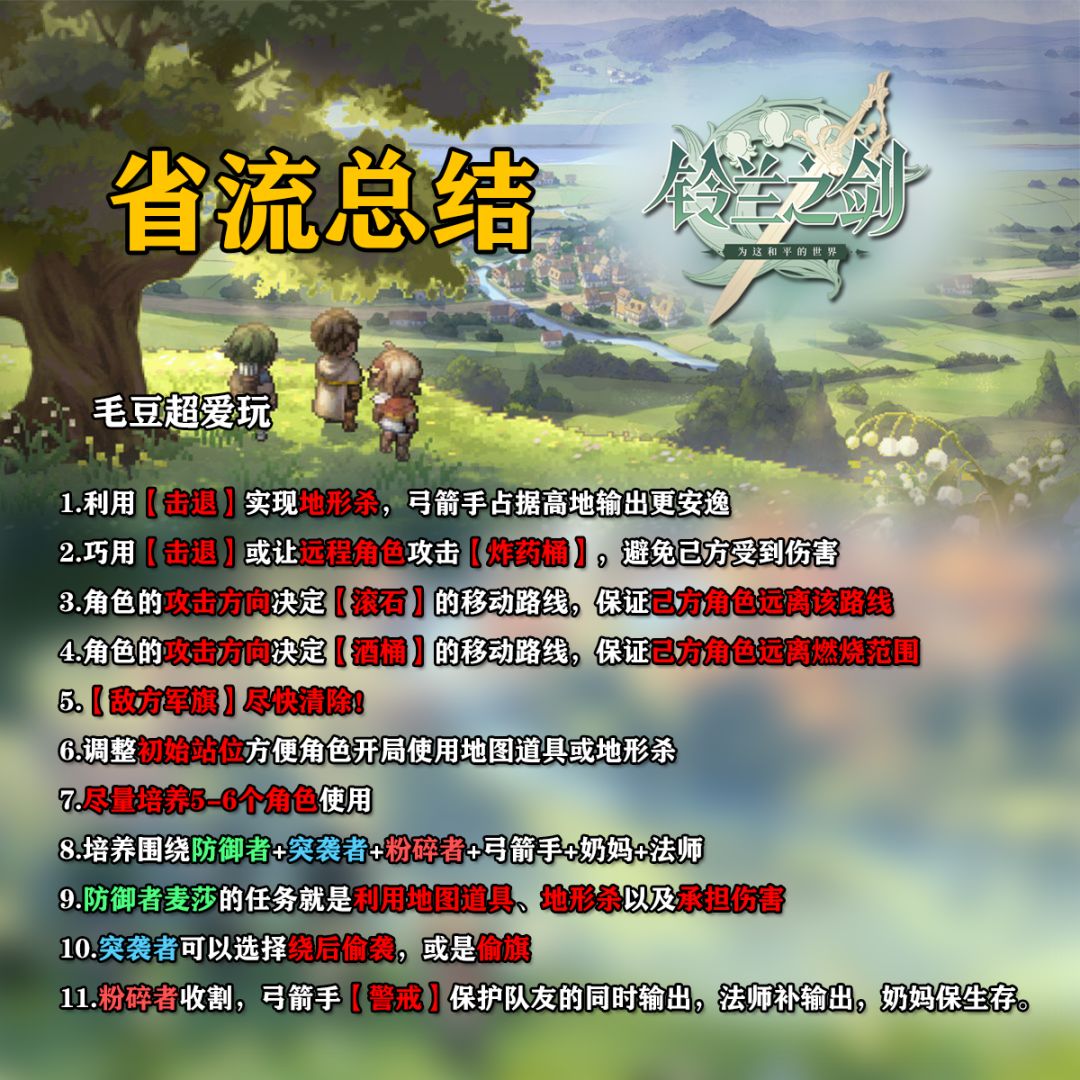 这里是毛豆,本期为大家带来的是《铃兰之剑-为这和平的世界》萌新指南,本期包含主线推图相关的一些小技巧,利用地形、道具、调整初始站位等,希望能帮萌新少走弯路,话不多说速速开启本篇攻略吧!
