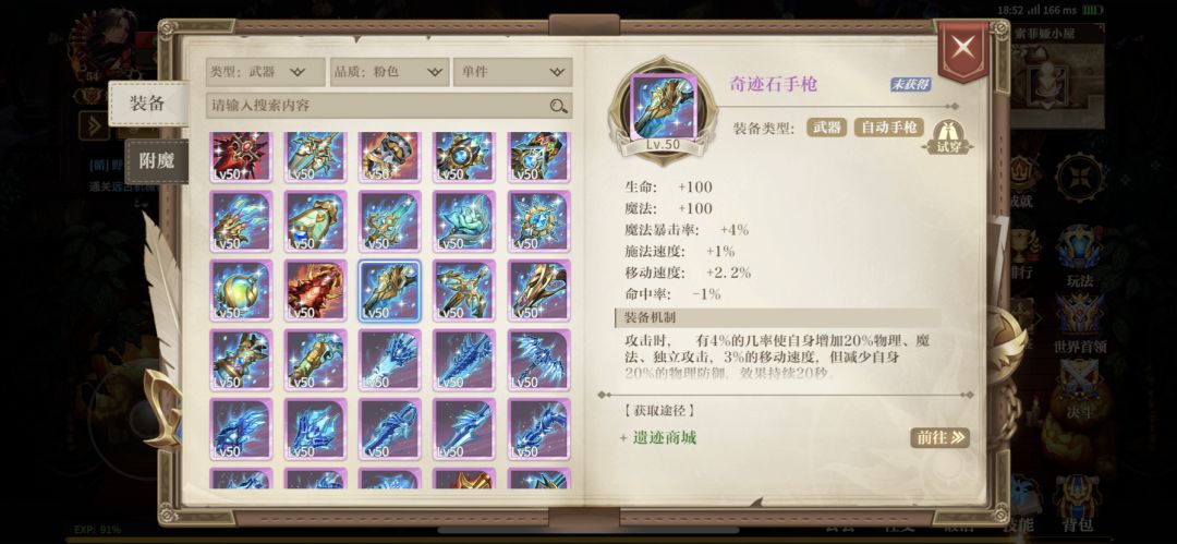 2,装备:布甲职业,装备是最便宜的一档了,后续条件允许,可以买一套传承,毕业套装就是星辰编织套装,武器粉裝也是特别便宜,买灾难意志自动手枪就行,可以做一下奇迹石手枪,毕业武器就是星辰陨灭