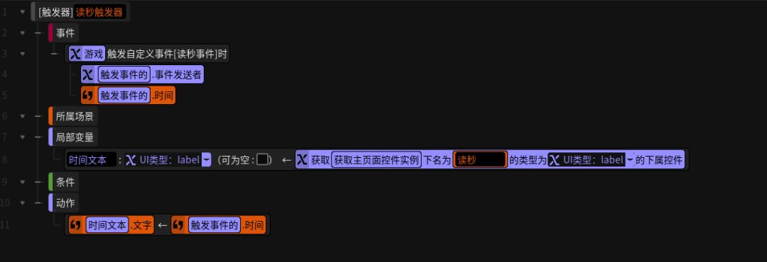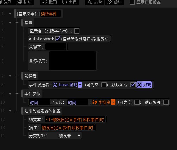 在客户端新建一个触发器,触发条件为:触发自定义事件(读秒事件时)就是刚创建的自定义事件
