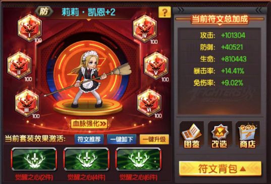 奥义推荐:血防+免,重复用血攻;主防不可或缺,因为莉莉凯恩是前排抗伤害的防卡,量和免伤是根本。