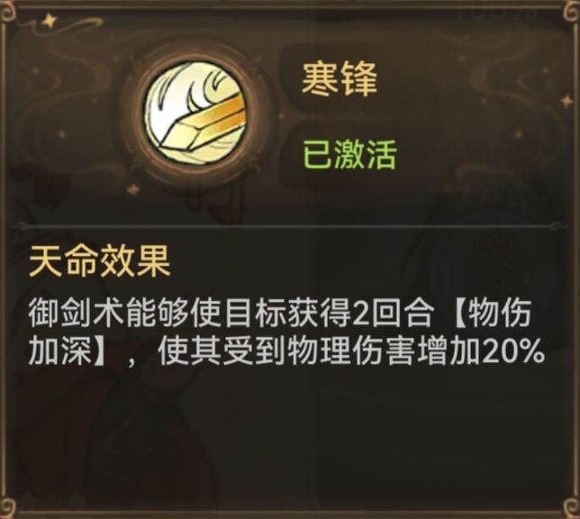 天命:天命推荐 剑意 寒锋 养剑 含其中两个就可以