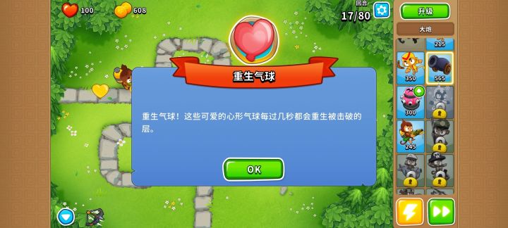 另外freeplay模式中(80回合以后)规则改变,所有气球被击破后都不会分裂而是变成一个子气球,重生气球就更没什么威胁了