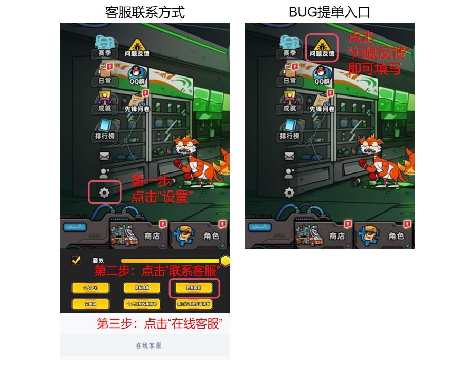 1.可以在游戏中点击【BUG提单】或“联系客服”,将相关的问题描述给鼠听,鼠鼠会帮你传达给策划大大们的!点击方式请看下方俺的示范👇