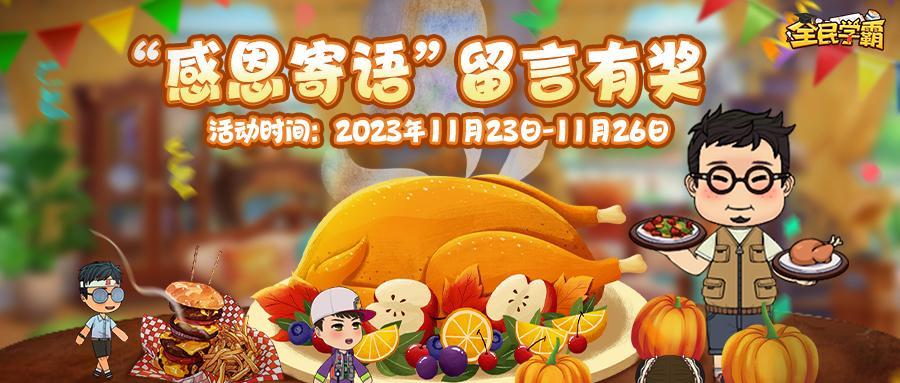 【活动参与方式】"全民学霸官方”gong众号活动推文底部直接留言你最想感谢人或事,并备注角色信息(大区+校区+编号+昵称)