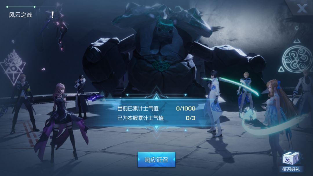 在后续风云之战正式开启后,已为本服成功累计一定士气值的玩家,将可领取一份征召好礼!