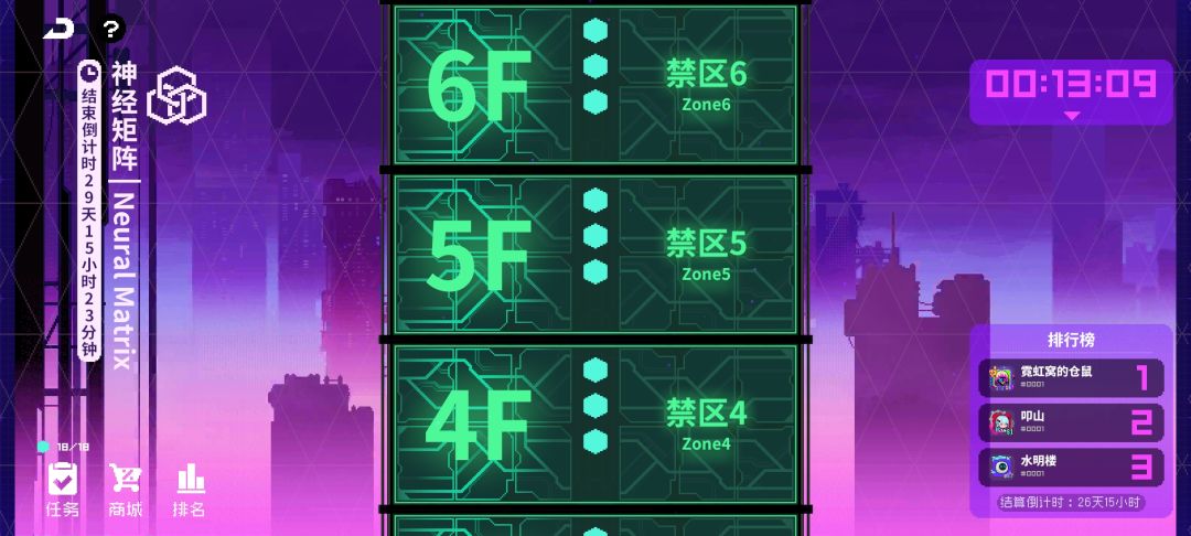 神经矩阵总共有六个禁区组成,玩法类似诸神版迷宫,我们需要在众多的分支路线里,寻找当前层的头目,并将其击败才能前往下个禁区。
