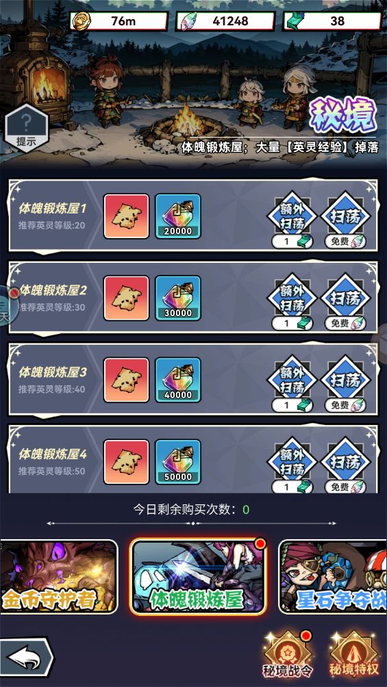 【进入方式】点击主页面下方 野外 秘境 体魄锻炼屋 即可查看副本规则和资源奖励