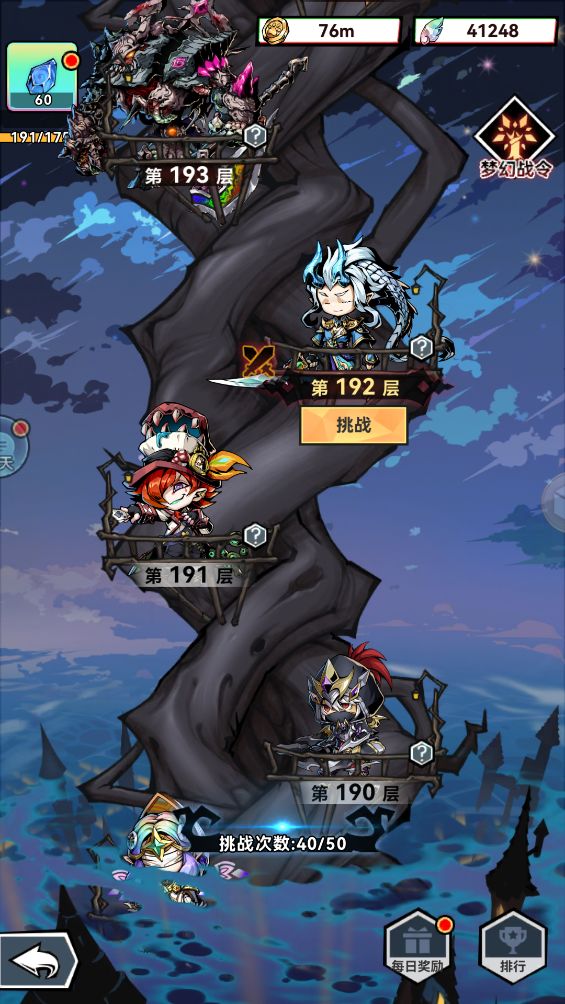 梦幻树还存在阶段奖励,通过制定关卡等级即可获得奖励,最高层数1000层;