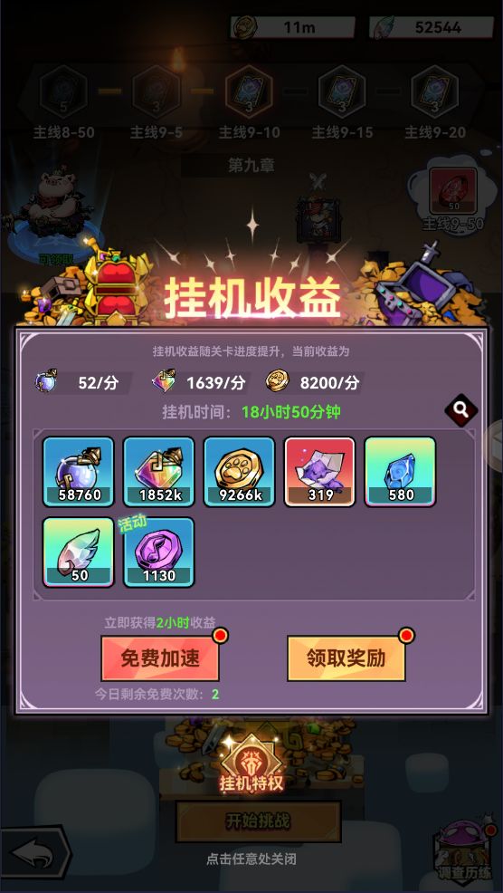 【进入方式】点击主页面下方 前线 点击宝箱即可查看和领取挂机收益~值得一提的是玩家们每日可以获得两次2小时的免费加速次数哦~