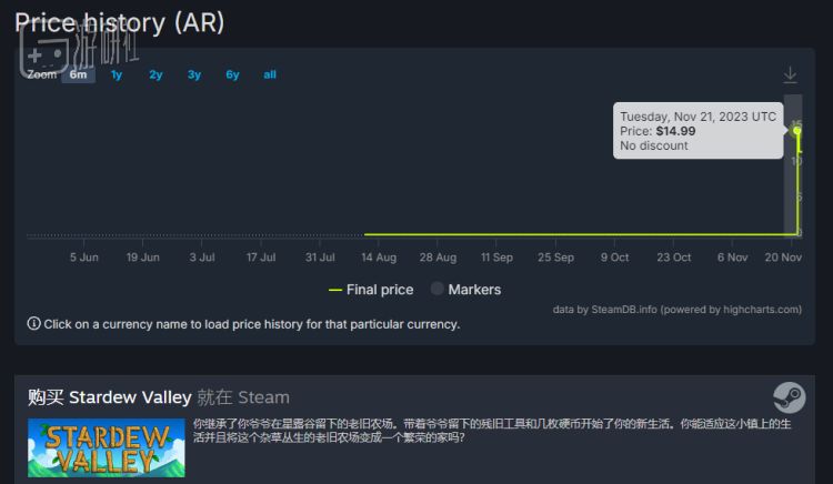 以阿根廷区为例,根据SteamDB网站的历史数据,不少知名游戏都涨了价。