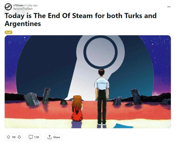 一则帖子标题写道:“对于土耳其和阿根廷人而言,今天是Steam的末日(The End of Steam)。”