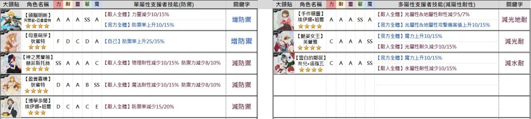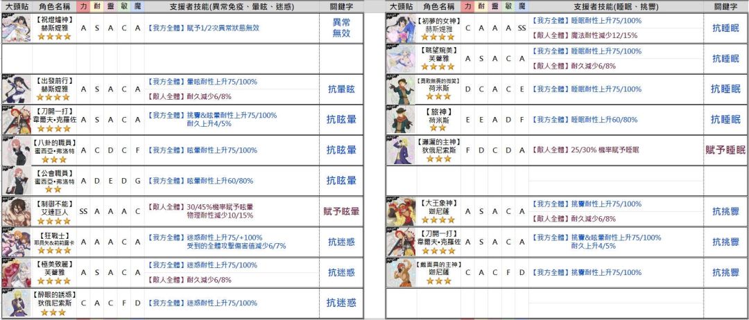 【心得】懒人用2~4星支持者技能 分类快速查询