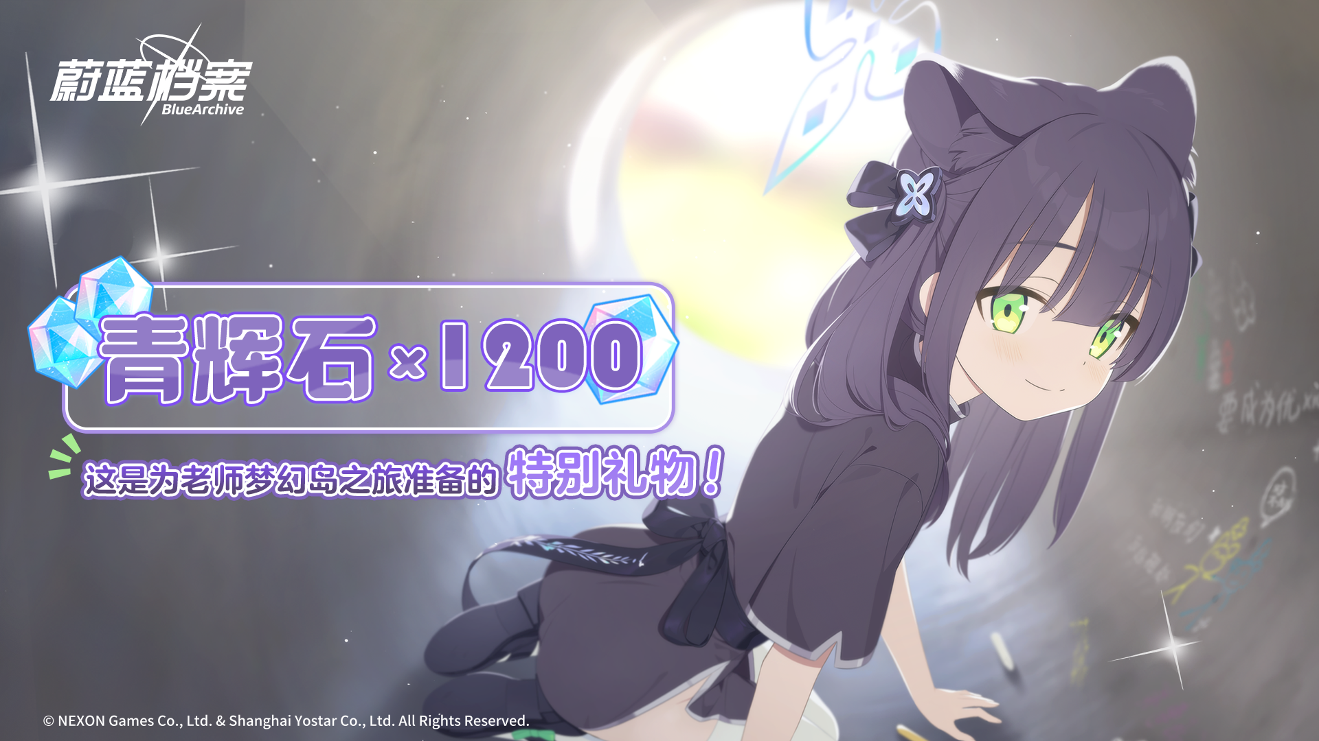 为纪念本次限时活动开启,阿洛娜为老师特地准备了【青辉石*1200】作为特别礼物,同时还有大量养成材料,现在登录游戏即可通过邮箱领取!请好好享受与成员们的梦幻岛之旅吧~