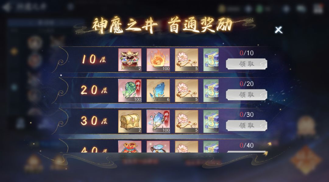 (5)前50层为挑战层数,每10层通关后可领取首通奖励,50层之后为挑战比拼层数;