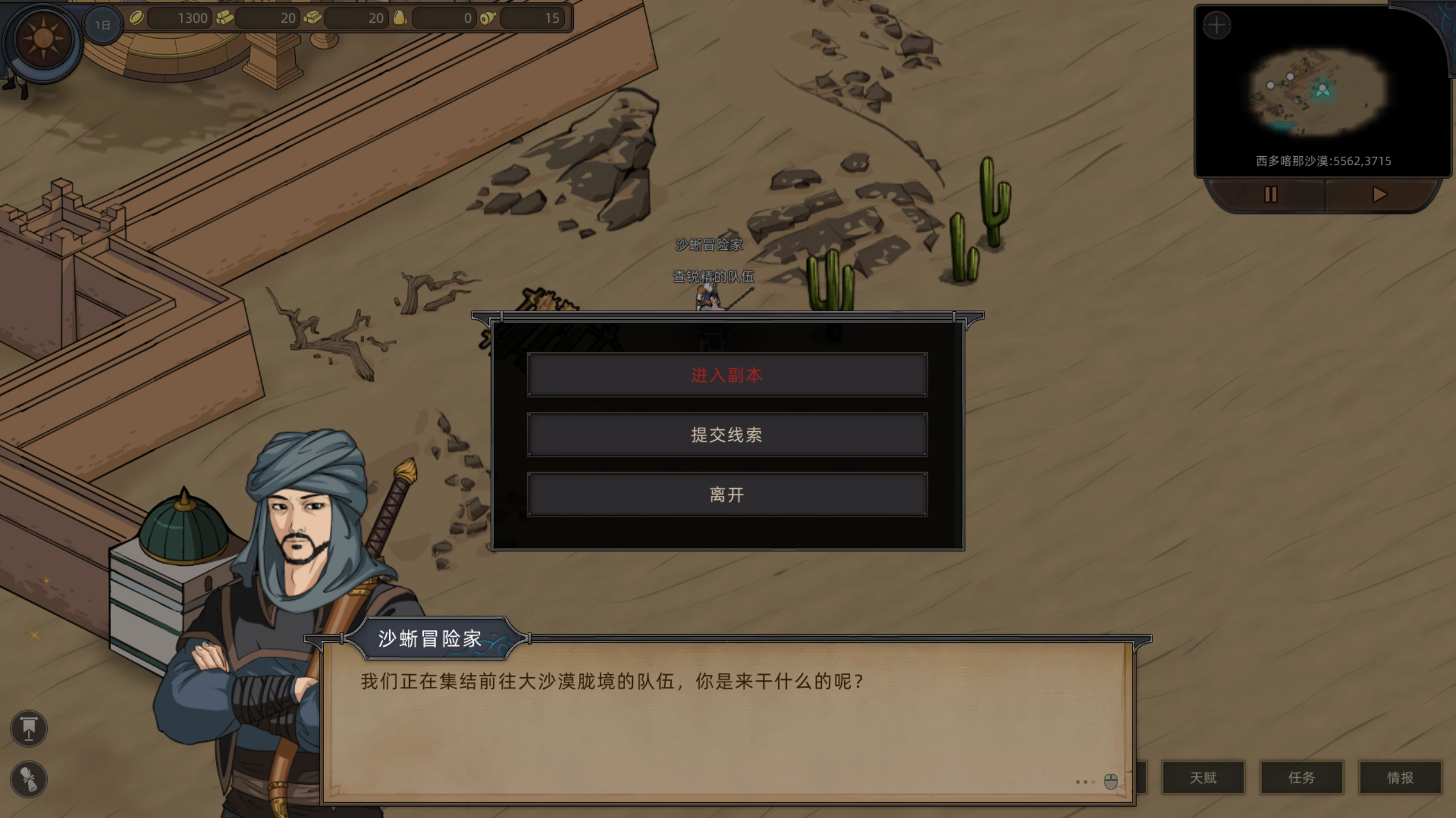 大漠各地都能找到这些探险家们的踪迹,只要提供从当地秘境获得的【线索】便可以在当地的探险家手中获取【情报】,提交情报后就会由探险家引路把各位直接带到胧境的首领处,顺利击败首领后,便可以获得强力的武器装备。