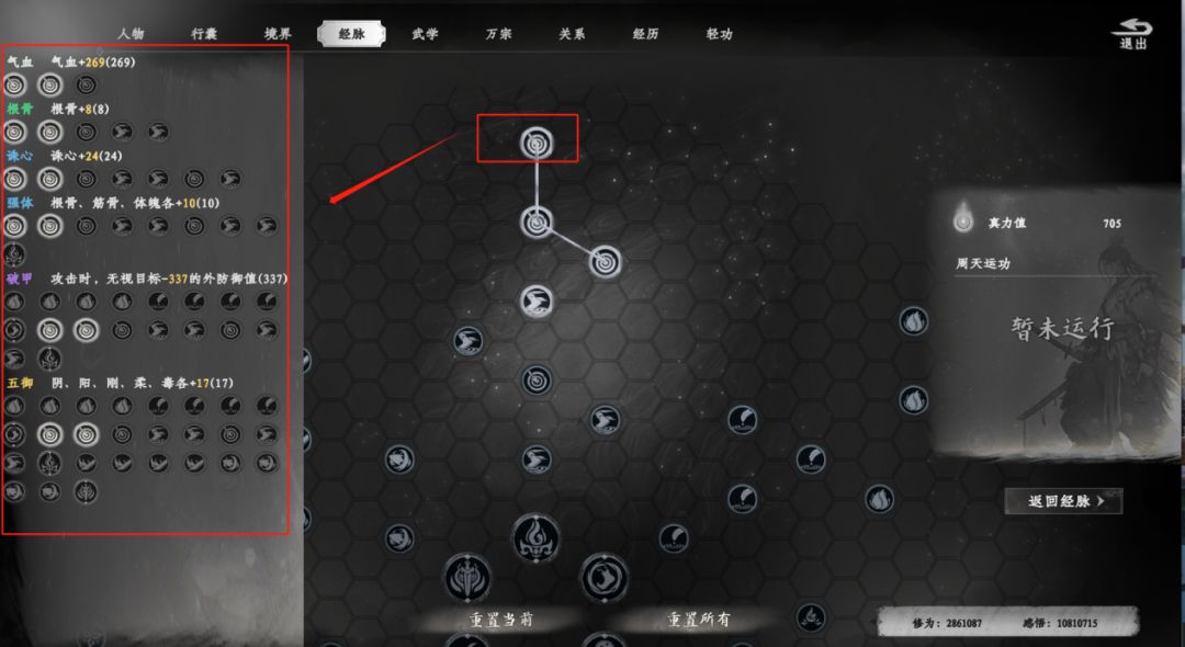 2.可以选取不同内功、或天才地宝打通经脉,以此实现数千种内功BD路线: