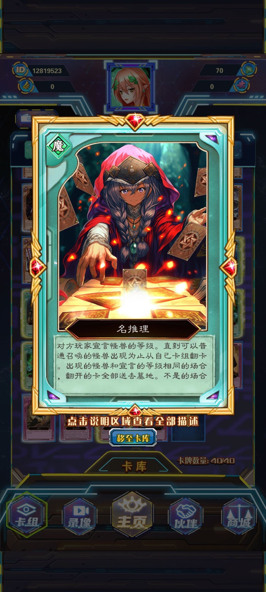 利用不同的星级怪兽,减少4星级怪兽数量来提高名推理的拉怪成功率,比如恶龙5星,死亡骆驼3星(可以无限抽卡),大神官6星,盖亚7星有奇效,手牌最后一张有奇效,削魂的死灵1星,蝗虫的军势3星,哈迪斯魔王6星