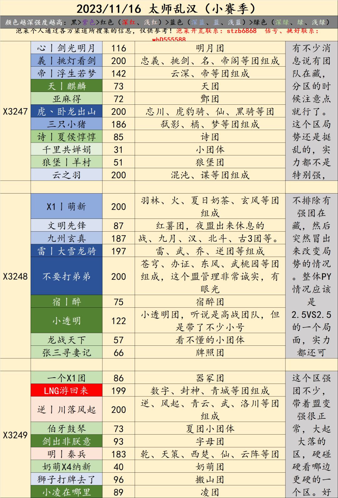 11月16日上午11点,X3247-X3249三个太师乱汉小赛季开启。