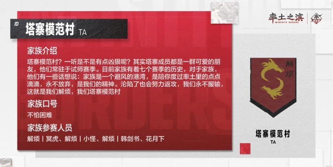 以上是部分参赛家族的风采展示,快来为自己的家族加油鼓气,同时也期待各位家族在邀请赛中的精彩表现!