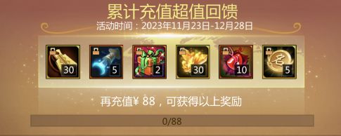 11月23日更新后累计在线60分钟,可获得锦衣卫腰牌*8、限时战力保护(1局)*2、兵粮卡*2。